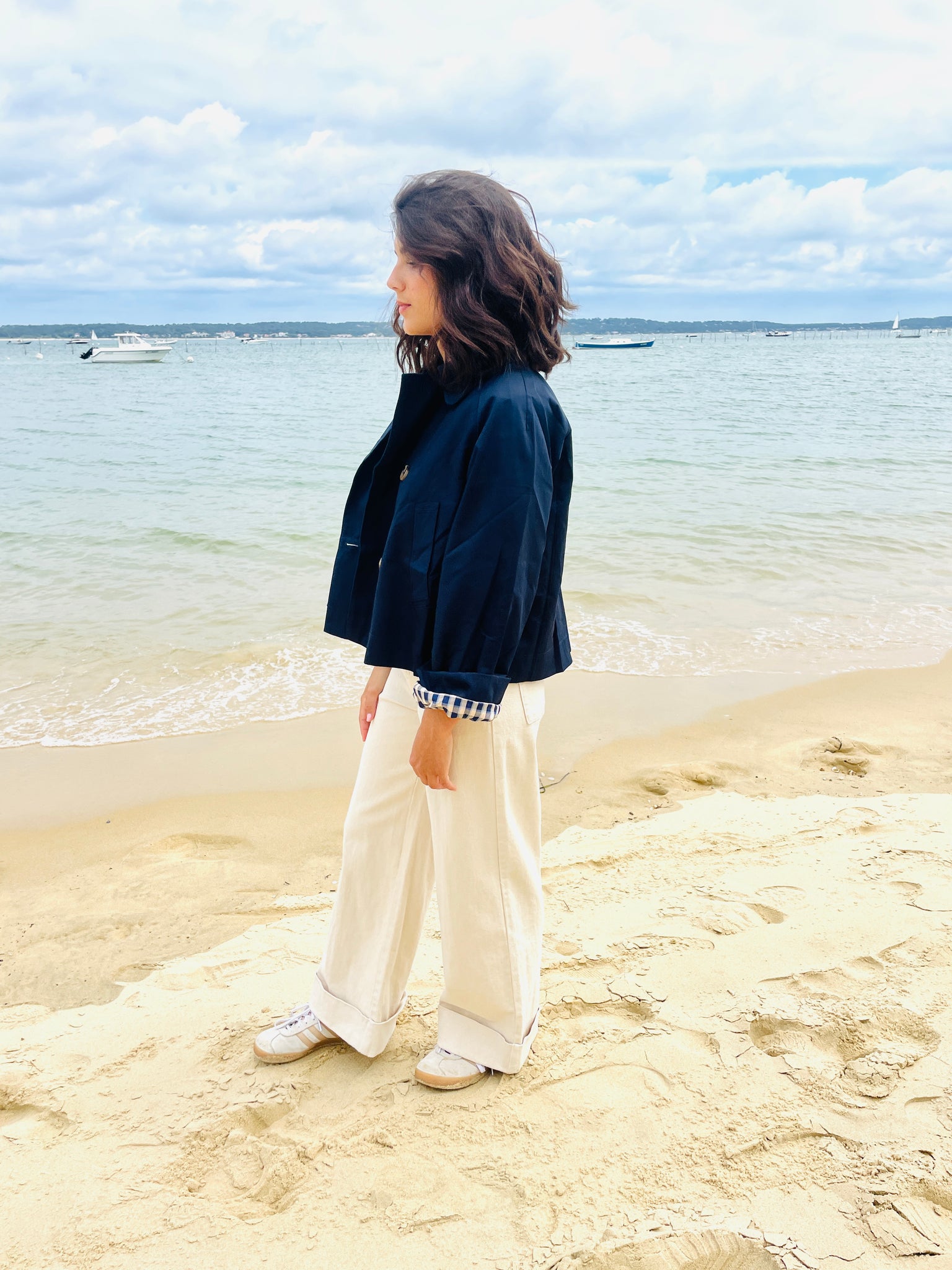 🌊 Brise Marine – Veste Courte Bleu Nuit à Doublure Vichy